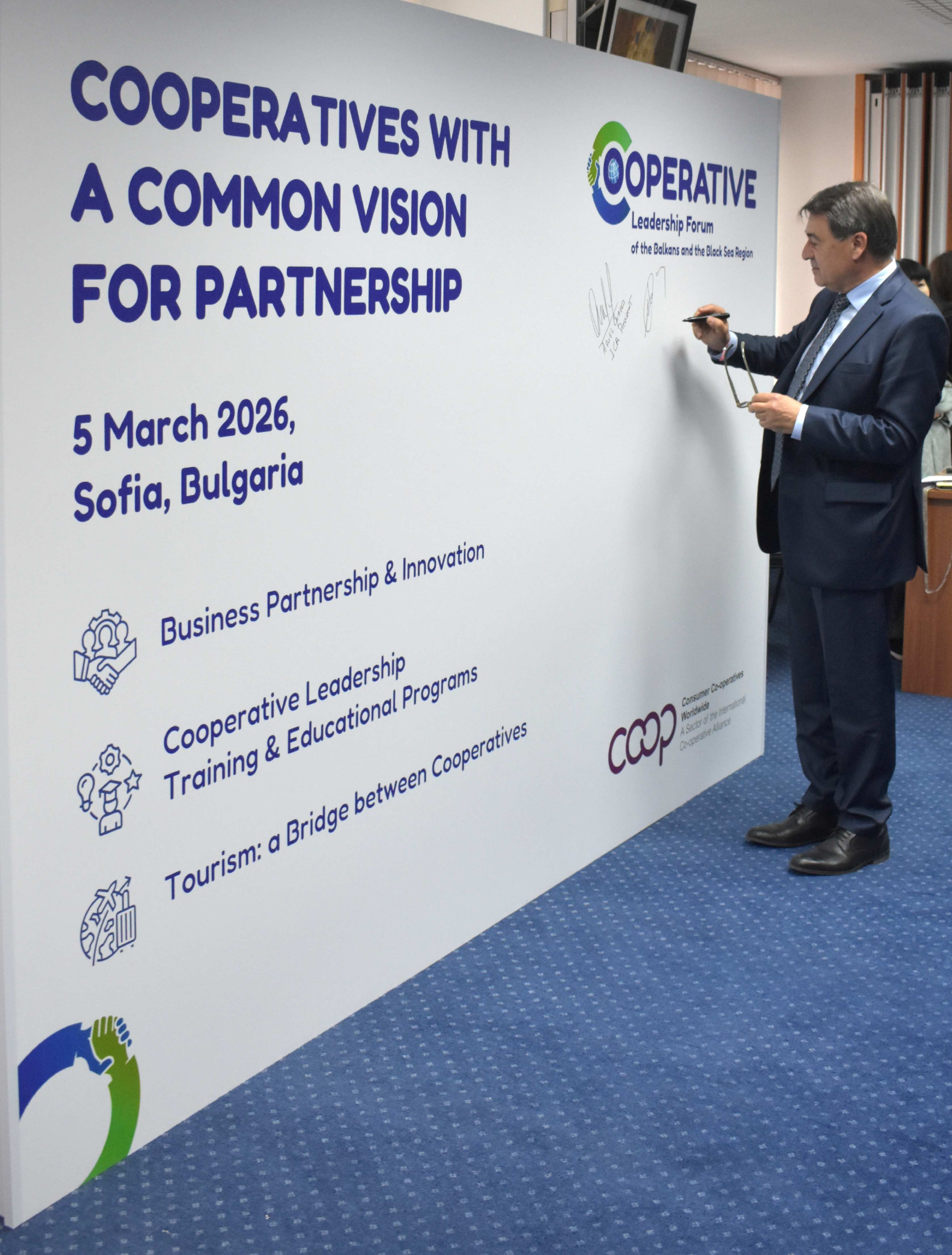 On March 5, 2026, the Cooperative Leadership Forum of the Balkans and Black Sea Region was held in Sofia under the auspices of Consumer Co-operatives Worldwide (CCW) and hosted by Central Cooperative Union, Bulgaria.